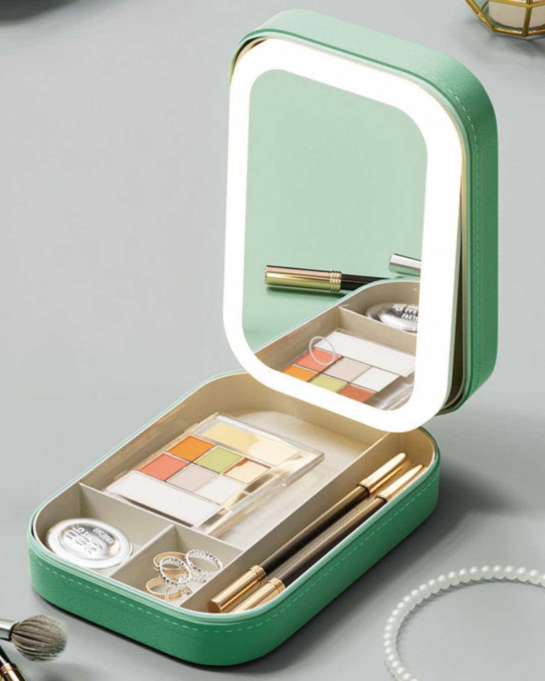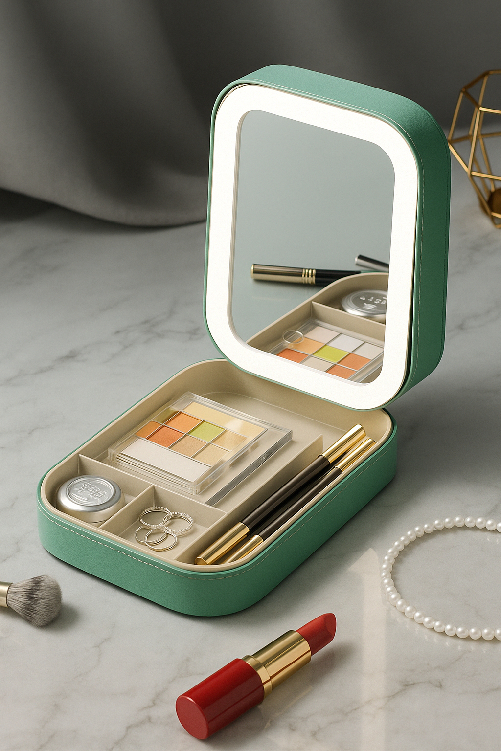 💚 ミントグリーンで魅せる💄LEDライト付きメイクボックス — あなたの美しさをどこでも輝かせる✨